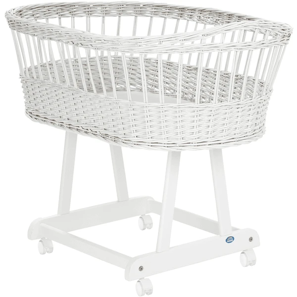El moisés Birthe aporta mayor comodidad al pequeño: El capazo extragrande de mimbre trenzado a mano se apoya sobre el armazón de pino macizo y gracias a sus 4 ruedas con frenos es seguro y fácil de trasladar.