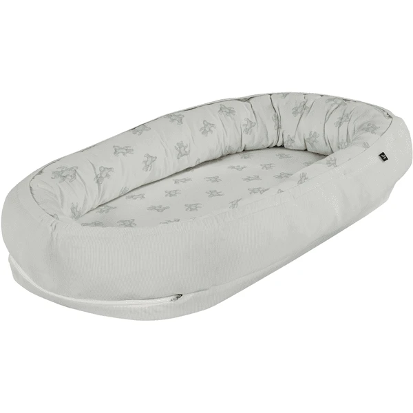 tttttInspirado en esto, se creó el aniversario design “Teddy 1961”. El intemporal modern , en colores reducidos y suaves, el Design con el fino rayado y el armonioso Allover – Print ofrece muchas combinaciones posibles en el entorno de sueño del bebé.