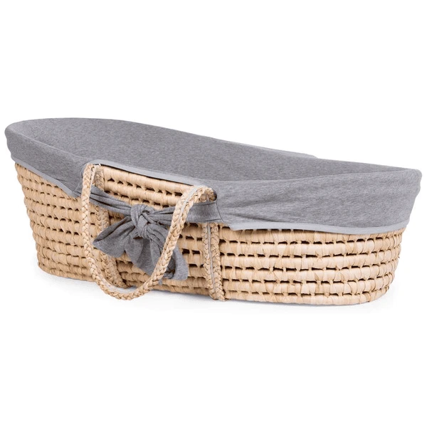 CHILD HOME Cesta de mosaico de hoja de maíz incl. colchón y funda gris