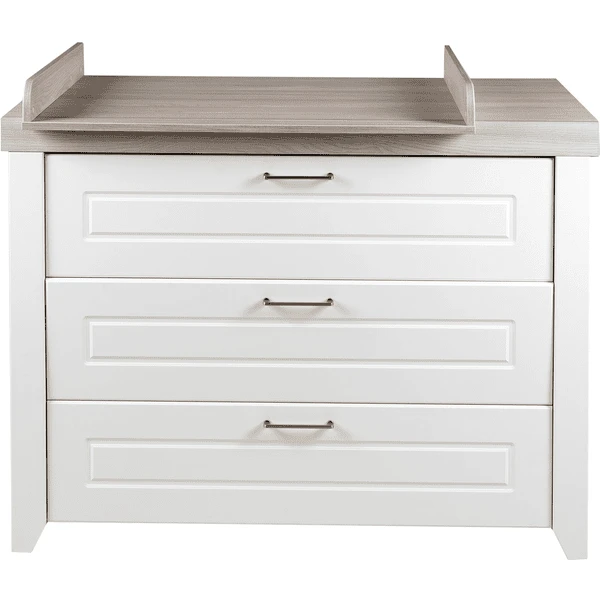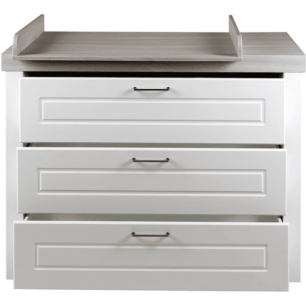 El cambiador con elegantes asas de color plateado Metal y sin tornillos visibles es una de nuestras versiones más amplias. Con otros muebles infantiles de la serie “Felicia”, puedes crear una habitaciĂłn infantil o de bebĂ© completa y con estilo. El cambiador se ha desarrollado en Alemania y cumple las normas de seguridad vigentes segĂşn la norma EN 12221 – 1+2:2008 + A1:2013. El cambiador “Felicia” se ha fabricado en la UE y es fácil de montar.