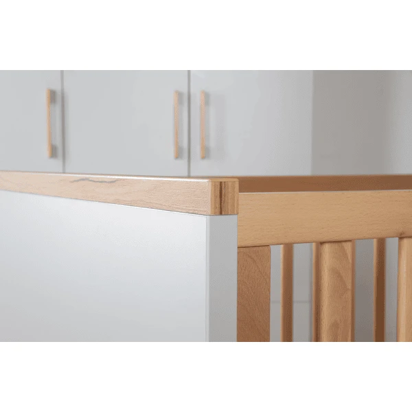 La cama para niños y bebés en crecimiento acompaña a tu bebé desde que nace hasta que empieza el colegio. La posición de tumbado superior de la cuna de altura regulable en 3 posiciones es especialmente cómoda para la espalda de los padres. Puedes levantar fácilmente a tu bebé de la cuna desde esta cómoda altura de descanso. Más adelante, la posición intermedia es la opción perfecta, ya que las 3 barras deslizantes extraíbles del elemento de la cuna permiten a su hijo pequeño entrar y salir con seguridad. La posición más baja de la cuna ajustable en altura está destinada a la cama Junior . Cuando su bebé sea mayor, la cuna combinada puede convertirse en una cama Junior utilizando los laterales de conversión que están disponibles por separado. El cabecero y el piecero de la cuna combinada pueden dividirse. Cuando se convierte en una cama Junior , se utilizan las dos mitades superiores del cabecero y el piecero y se crea un nuevo aspecto en la habitación de los niños. La cuna combinada “Tobi” puede utilizarse hasta que el niño tenga 7 años (o hasta un peso corporal de 50 kg).