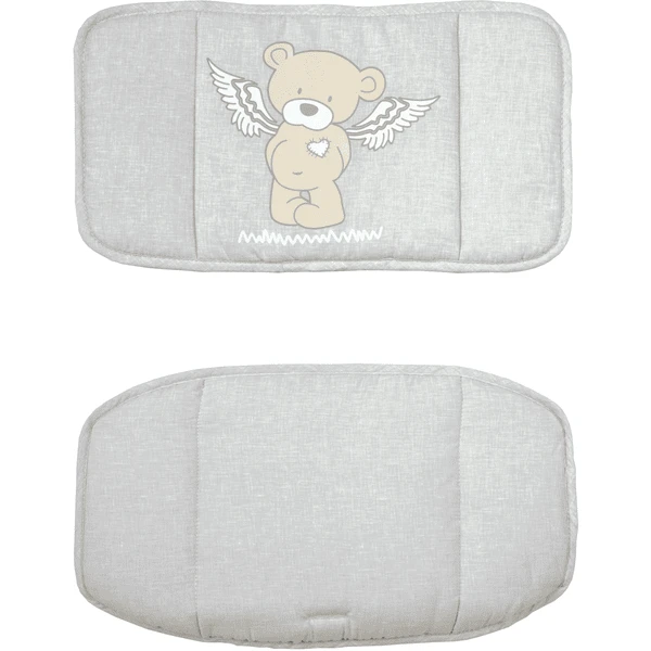 El reductor de asiento roba de dos piezas está hecho de lona recubierta de poliuretano con un suave relleno acolchado de 100% poliéster. Por lo tanto, es fácil de limpiar y repelente al agua. Su suave acolchado proporciona una excelente sujeción que le proporciona a los más pequeños la mejor comodidad de asiento. También es muy práctico que el reductor del asiento conste de dos partes separadas, y por lo tanto encaja en cualquier posición de la trona, así que crece con ella.