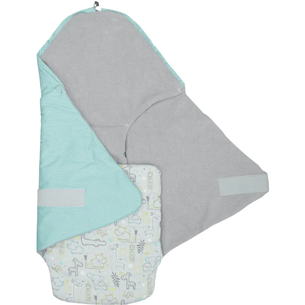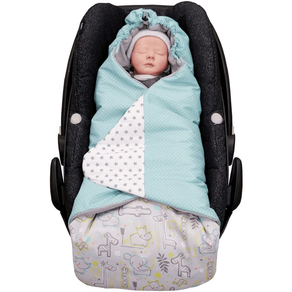 No importa si es una silla de coche, un cochecito o una silla de paseo – la manta envolvente para bebés encaja en universal en los modelos más comunes. A través de las aberturas prefabricadas de la manta, los cinturones de seguridad de los portabebés y de los asientos para niños se pueden pasar fácilmente a través de la manta para bebés. De esta manera la manta puede ser doblada incluso en un coche caliente y el bebé permanece atado con seguridad. Se puede lavar a máquina hasta 40 °C sin problemas. La manta de envoltura para el Maxi-Cosi consiste en un suave tejido exterior (100% algodón) y un tejido interior de lana Sherpa (90% algodón, 10% poliéster).